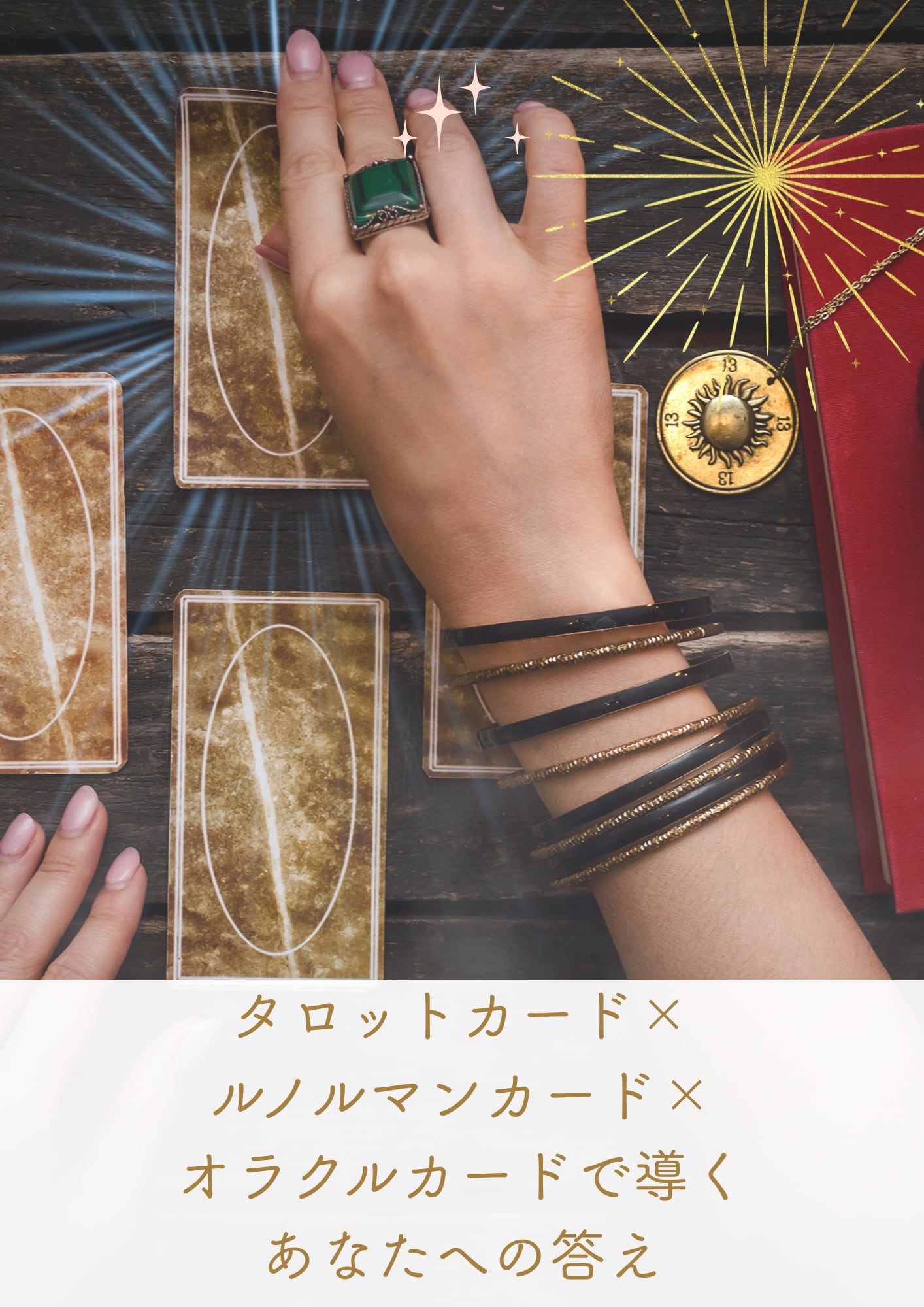 タロット、ルノルマン、オラクルカードのそれぞれの特性を活かしてあなたの未来を開く、特別なリーディング!